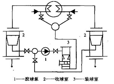 3.2冷凝器膠球清洗裝置系統(tǒng)構(gòu)成見圖1所示。