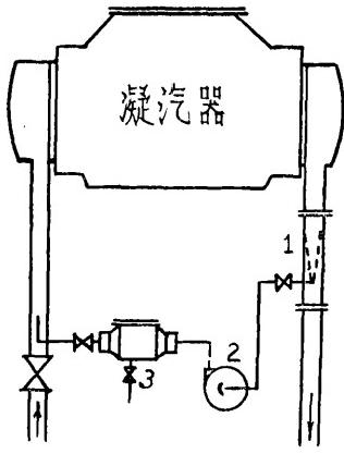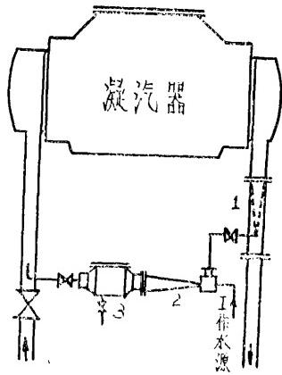 水力噴射器在現(xiàn)場(chǎng)可自行加工易于實(shí)現(xiàn),對(duì)開(kāi)式循環(huán)的電廠,由于冷卻水入口壓力低,采用帶噴射器的系統(tǒng)較為經(jīng)濟(jì),特別是當(dāng)廠內(nèi)有壓力水源(大于4公斤/厘米2)時(shí),就更適用。過(guò)去國(guó)內(nèi)幾個(gè)試驗(yàn)電廠大都采用此系統(tǒng)。