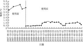 圖3為某城市綜合體使用冷凝器膠球自動(dòng)在線清洗裝置前后的端差變化。