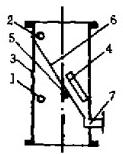 注:1——網(wǎng)后測壓點(diǎn),2——網(wǎng)前測壓點(diǎn),3——收球網(wǎng)外殼,4——導(dǎo)流板.5——軸,6——網(wǎng)板,7——膠球引出管