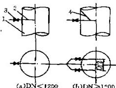 膠球管路應(yīng)短直、流暢.變徑頭圓滑以減小系統(tǒng)的阻力損失。投球管宜布置在距凝汽器循環(huán)水進(jìn)口有一定距離的直管段。投球管伸至循環(huán)水管中心,其出口逆向循環(huán)水流方向。循環(huán)水管公稱直徑DN<1.2m時(shí),投球管為1根;DN≥1.2m時(shí),投球管為2根,見圖5。