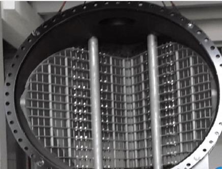 收球網(wǎng)的作用把膠球從循環(huán)水中分離出來心保證不漏球、不卡球收球網(wǎng)安裝在冷卻水出口管段上,從凝汽器流出的夾帶膠球的循環(huán)水經(jīng)過收球網(wǎng)時,膠球被|女并由引出管從收球網(wǎng)中吸出,由膠球泵打回收球室。