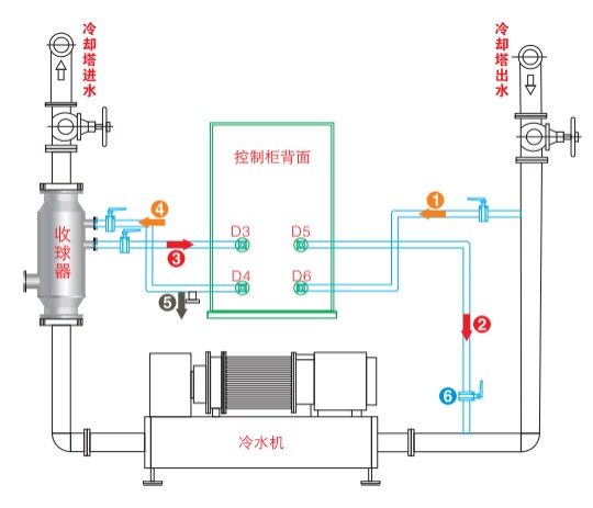 發(fā)電廠凝汽器膠球自動清洗裝置系統(tǒng)組成: