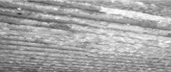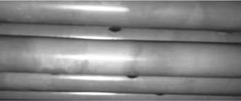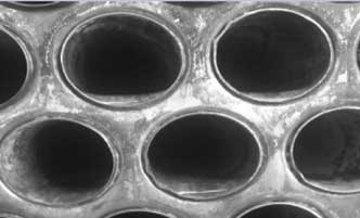 清洗后,前7效蒸發(fā)器換熱管外表面與末效冷凝器換熱管內(nèi)表面都清潔、光滑,無(wú)明顯附著垢,無(wú)點(diǎn)蝕及二次浮銹,并有致密氧化膜,見圖6~圖7。